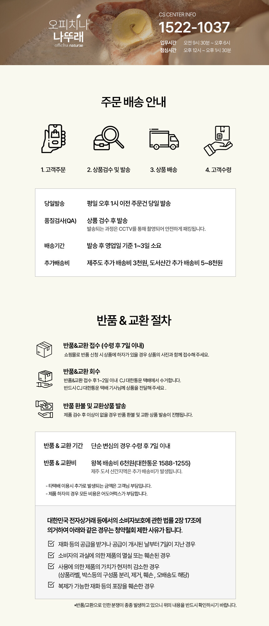 - 상품 하자, 오배송의 경우 수령일로부터 7일 이내 고객센터 접수 후 교환∙반품이 가능합니다. (교환/반품비 무료)