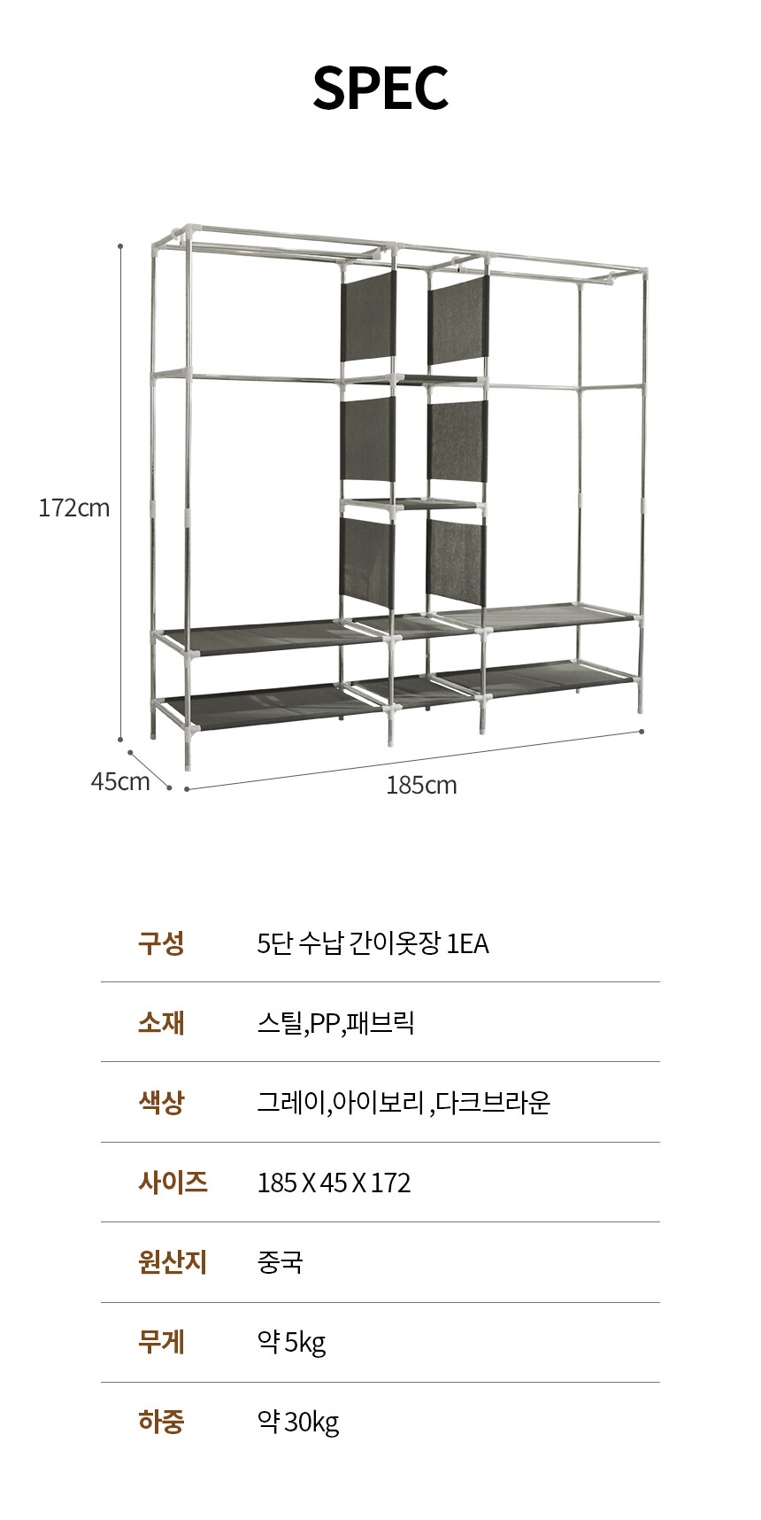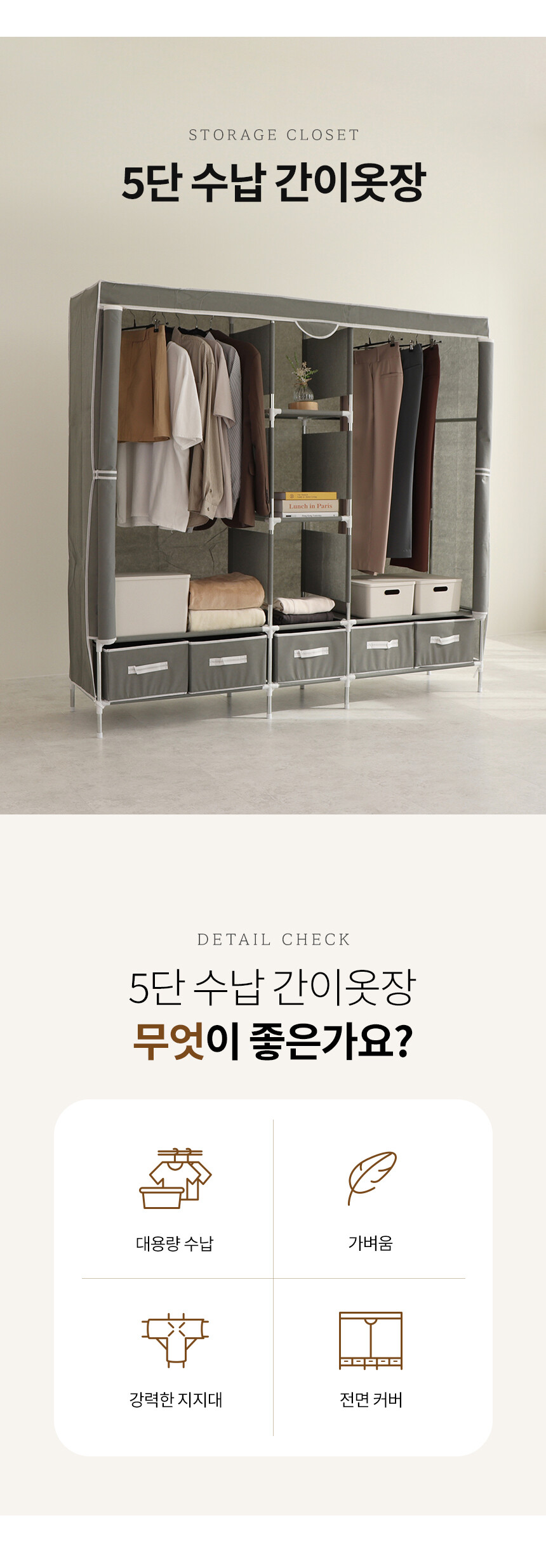 수납간이옷장 5단 OS12 (4color)