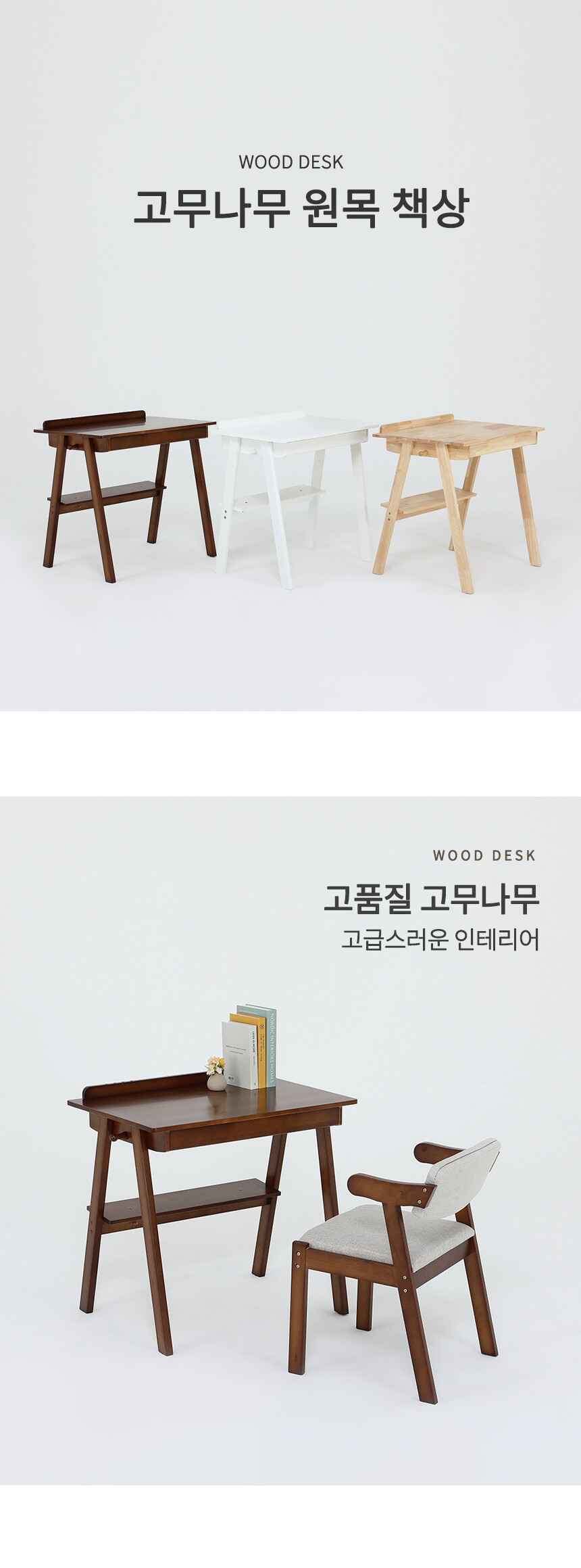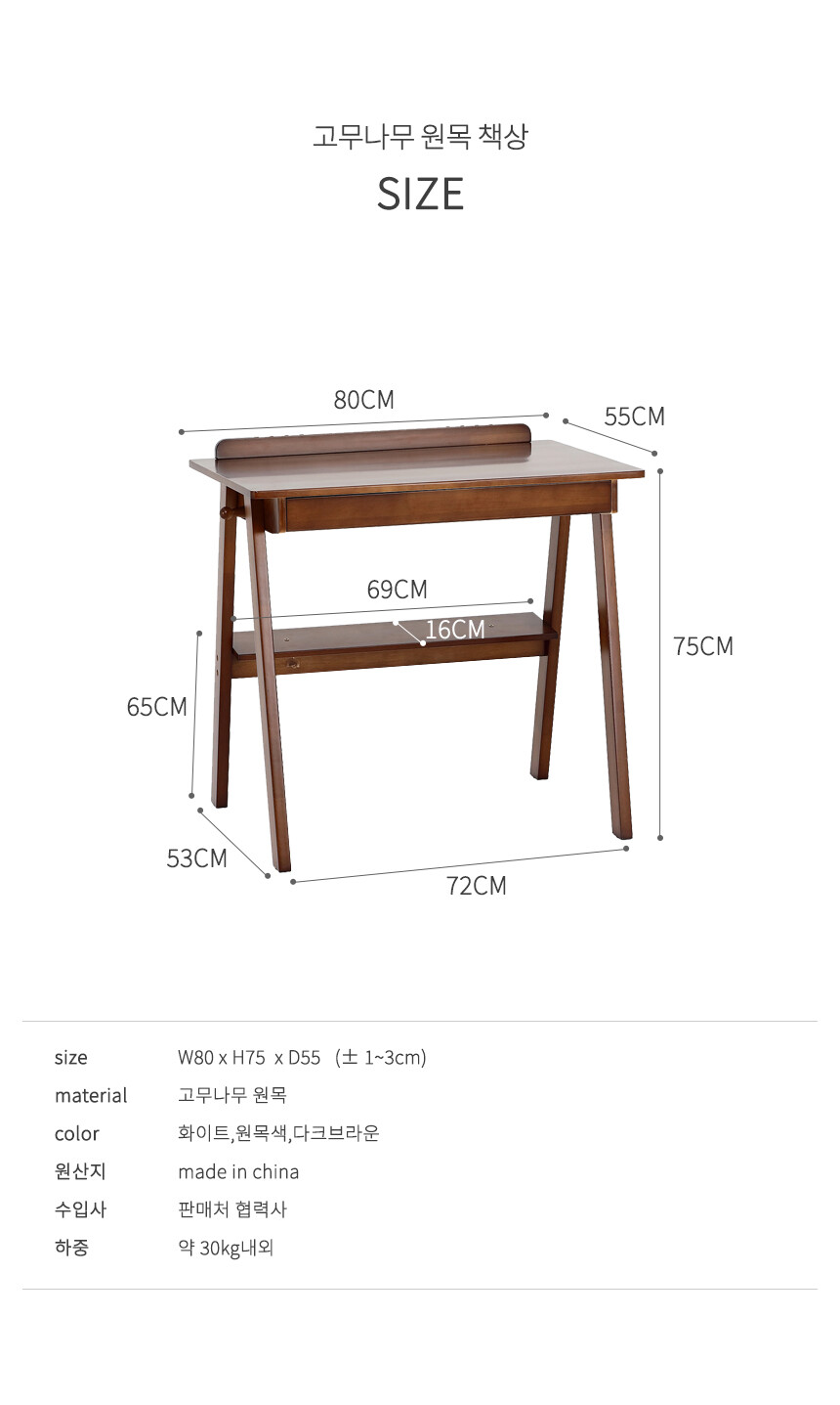 고무나무 원목책상 선반형 OS24 (3color)