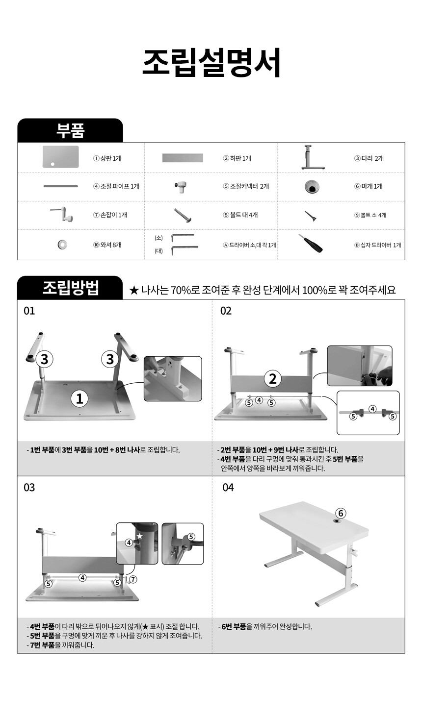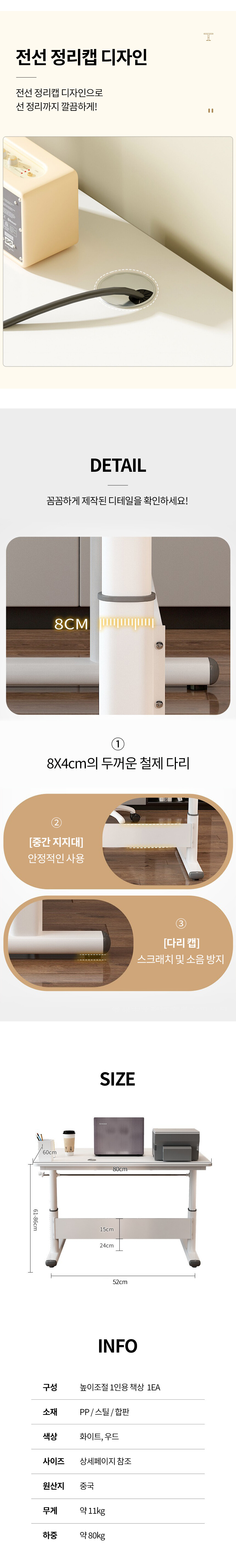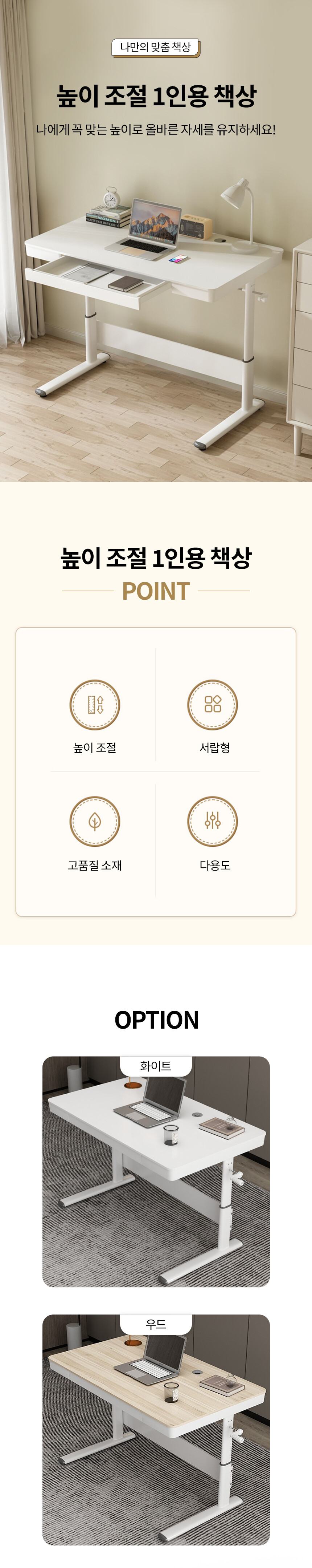 높이조절 1인용 책상 OS49 (2color)