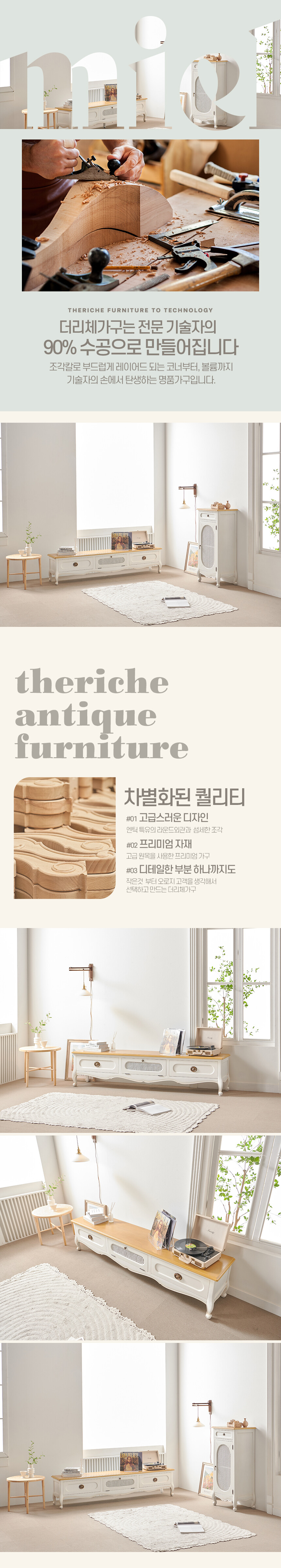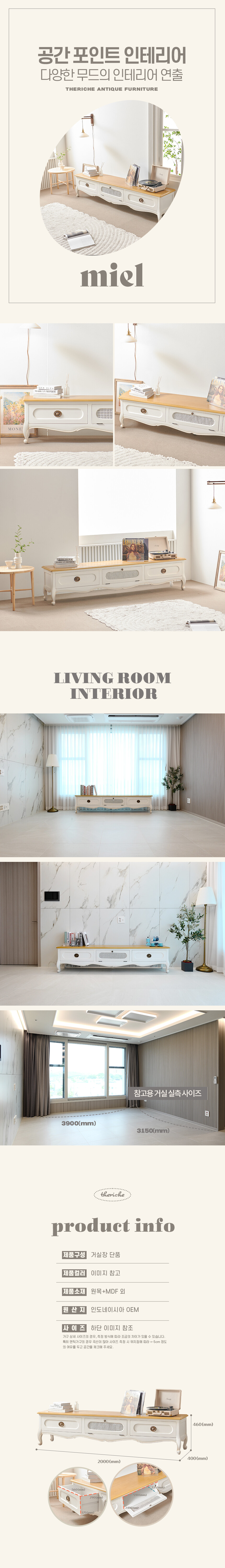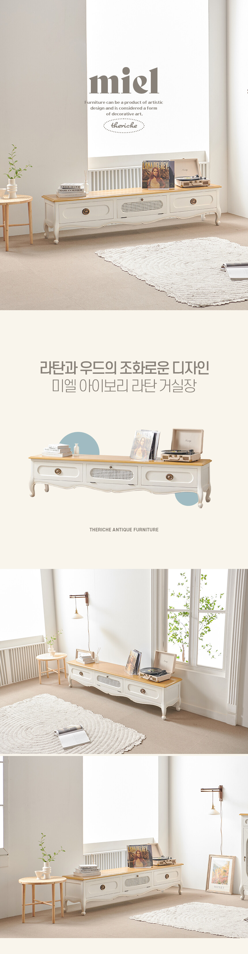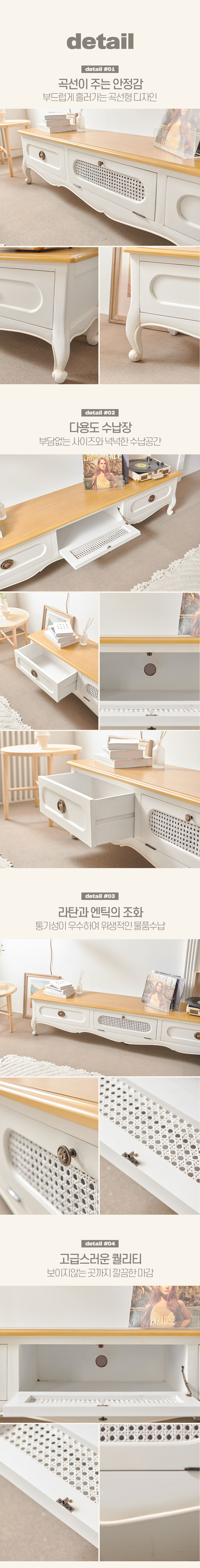 로즈윌 프리미엄 미엘 럭셔리 클래식 아이보리 라탄 거실장 2000