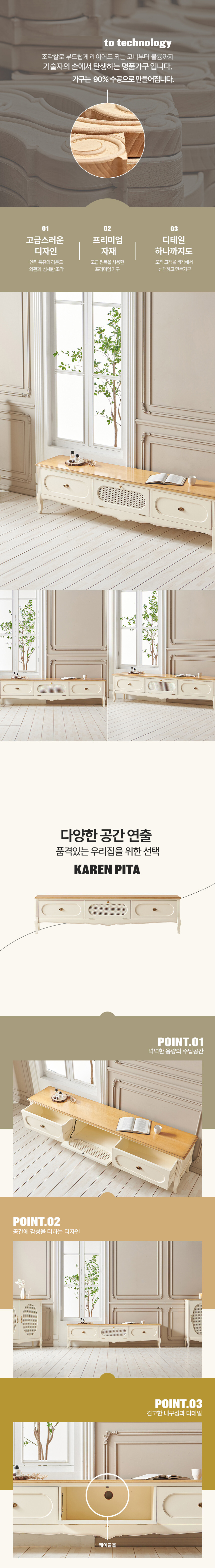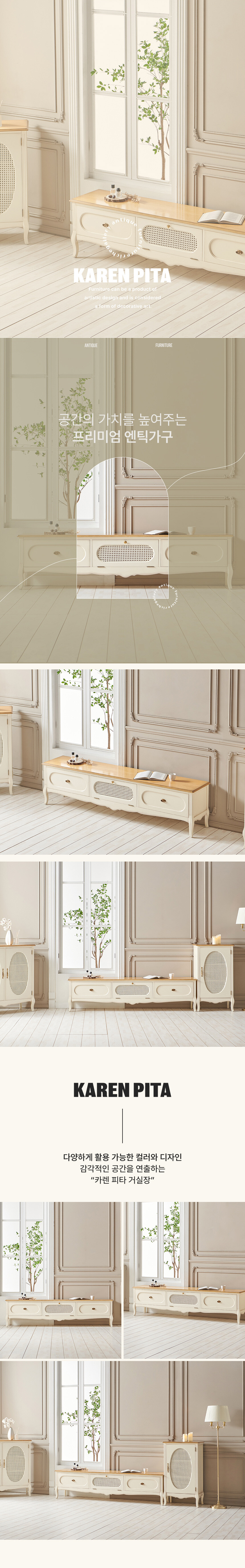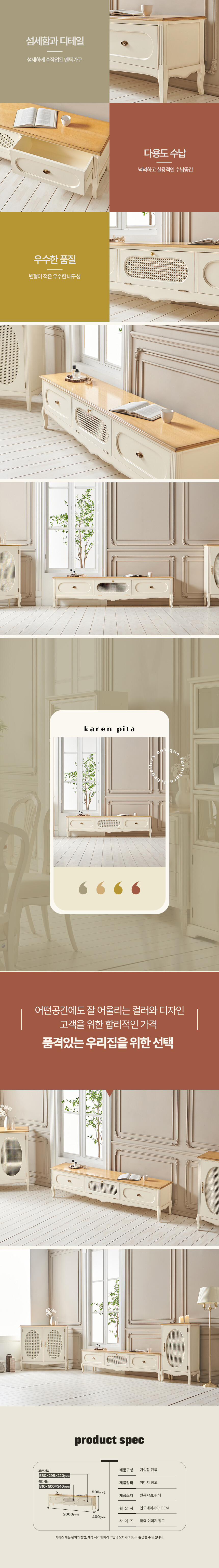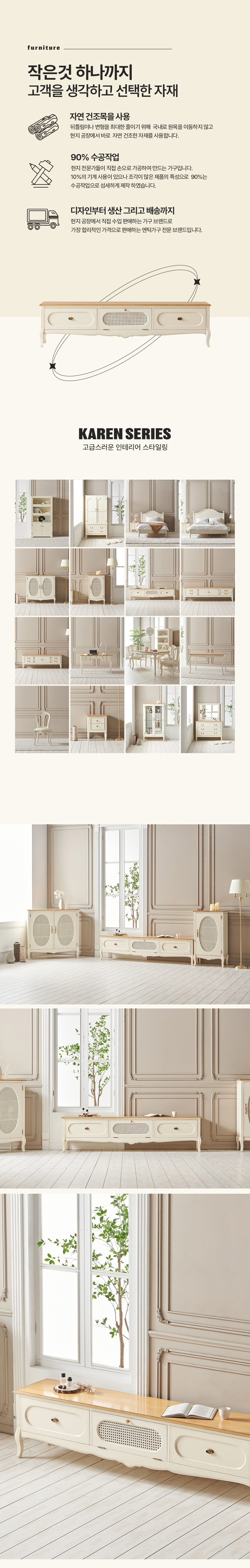 로즈윌 프리미엄 카렌 럭셔리 클래식 원목 라탄 거실장
