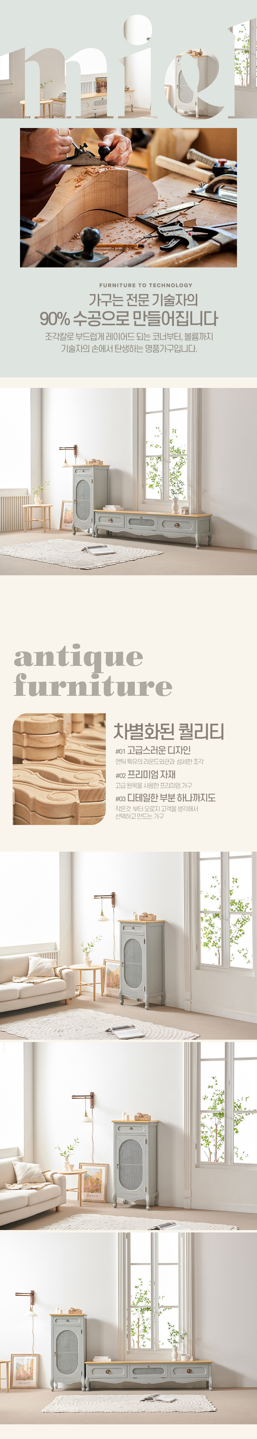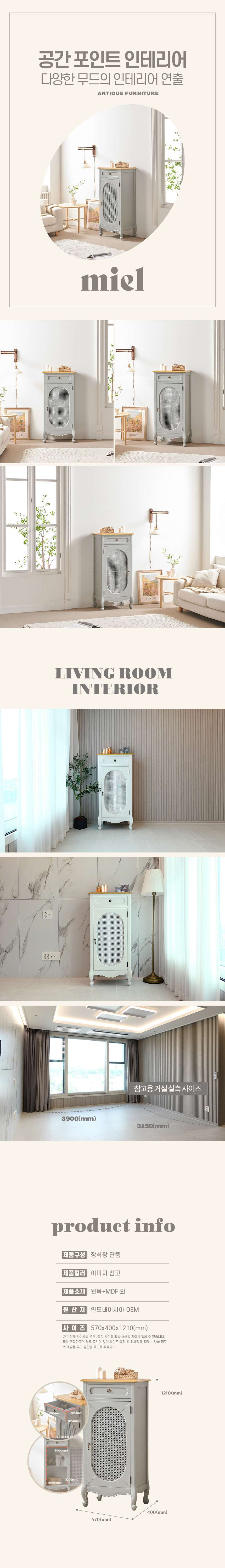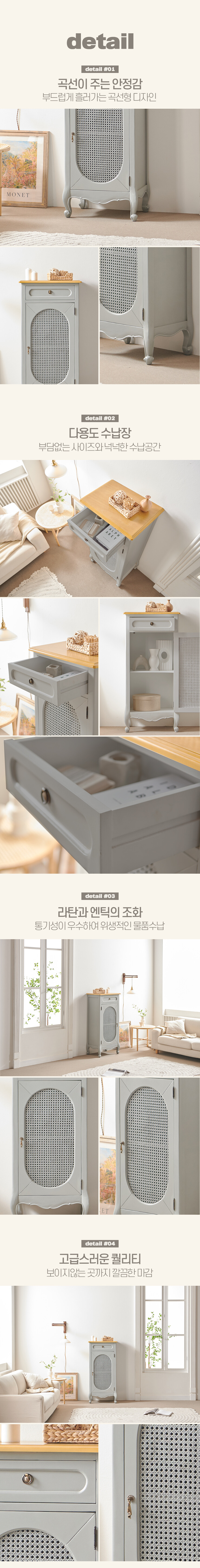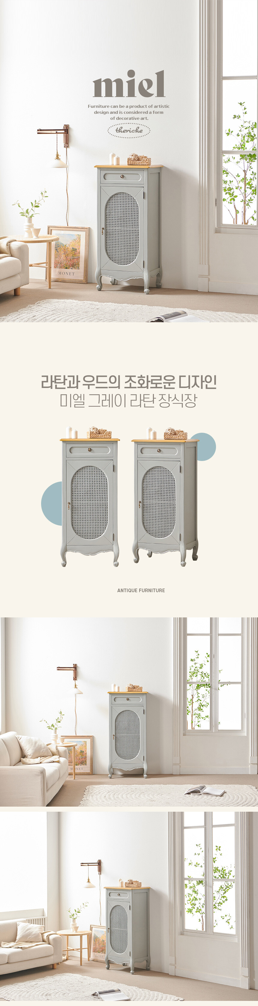 로즈윌 프리미엄 미엘 럭셔리 클래식 그레이 라탄 장식장