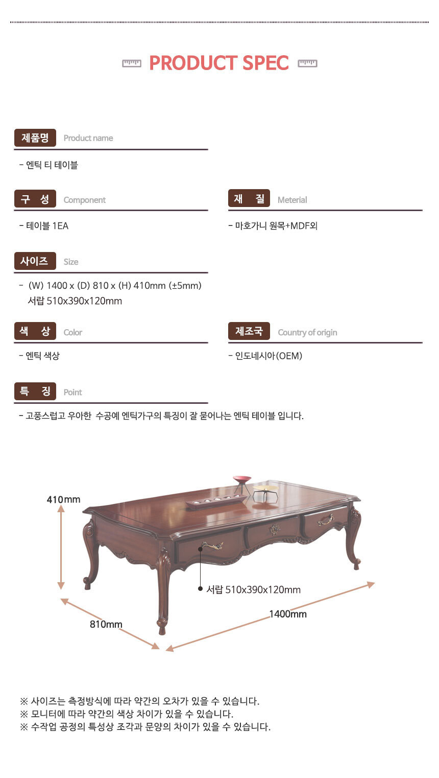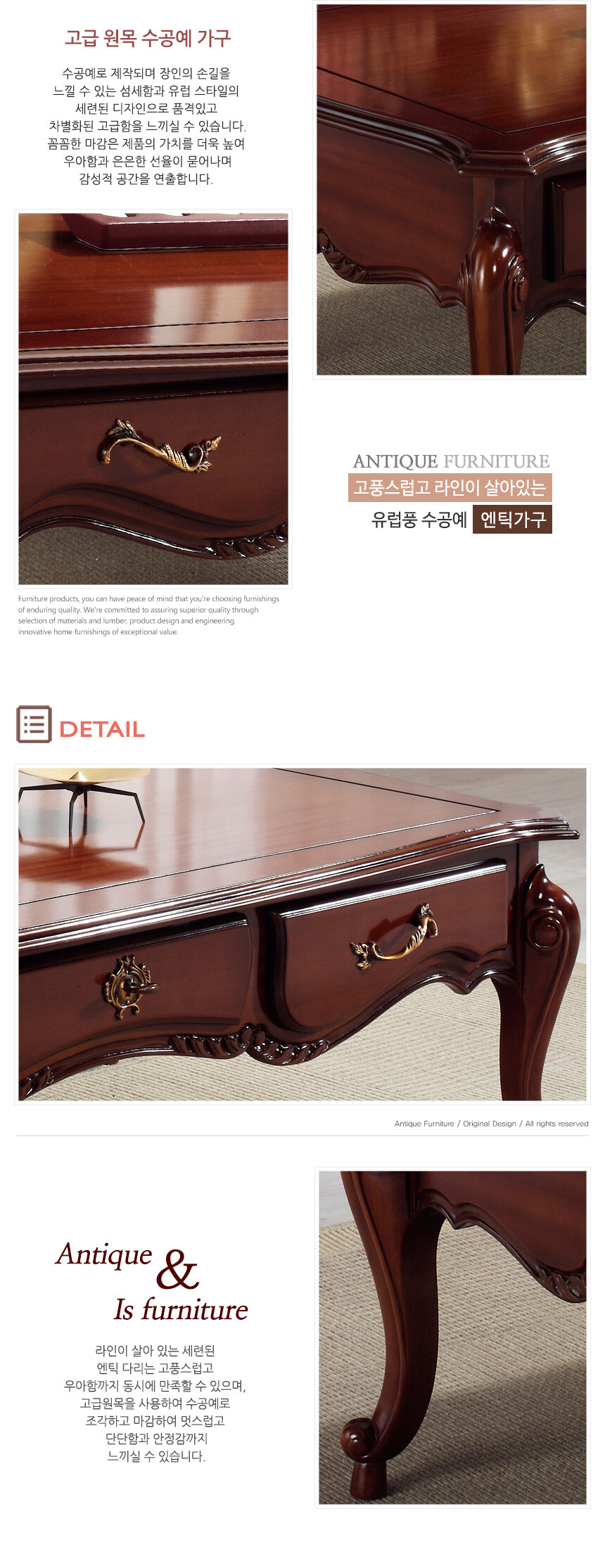 로즈윌 프리미엄 모카티 럭셔리 클래식 브라운 엔틱 테이블