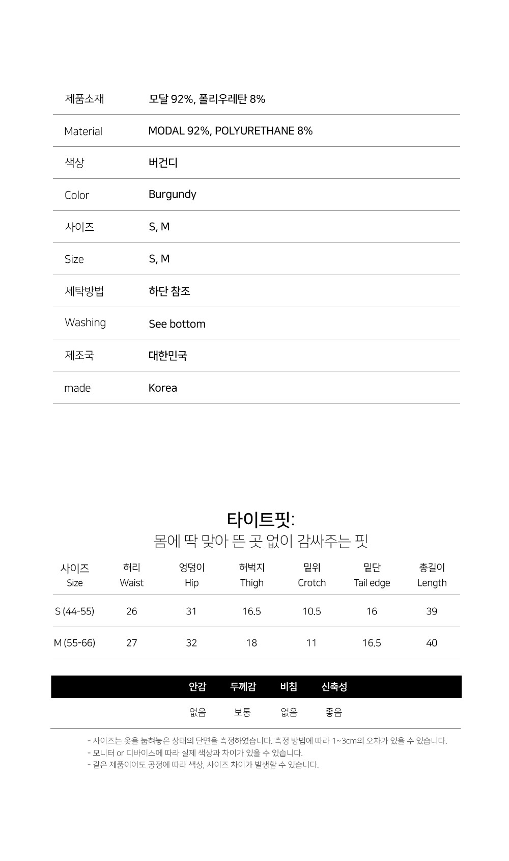 - (평소 착용하는 사이즈가 아닌 로즈윌 기준으로 판단)