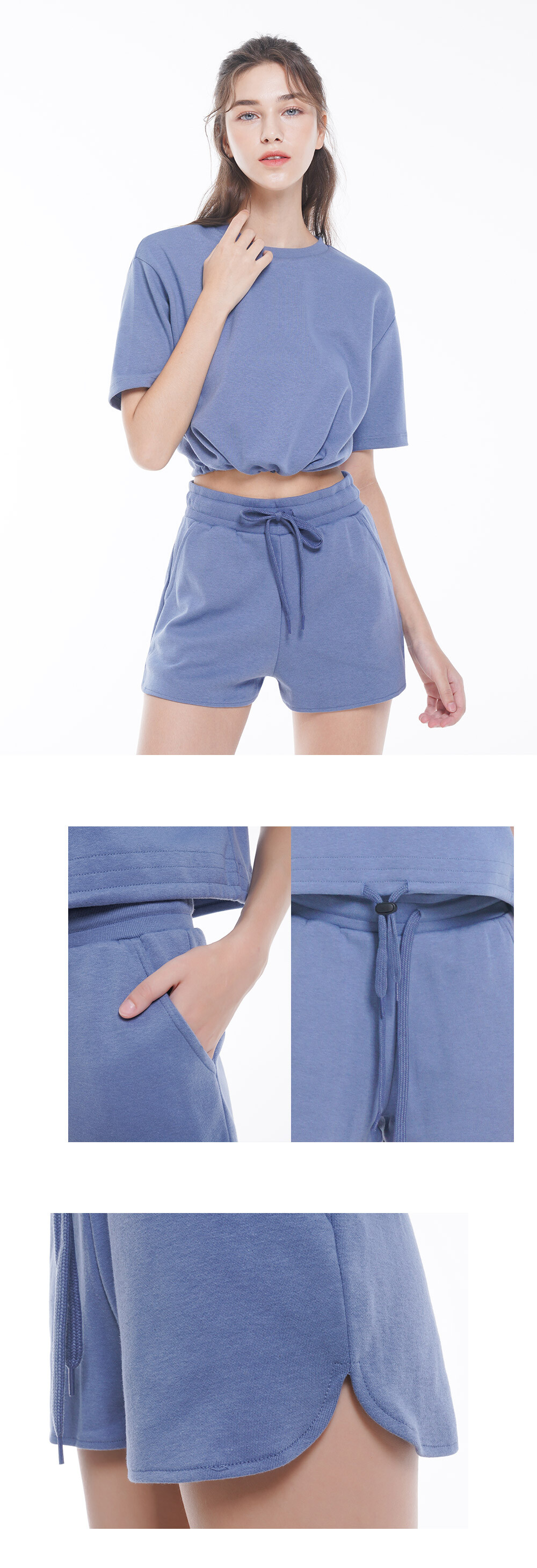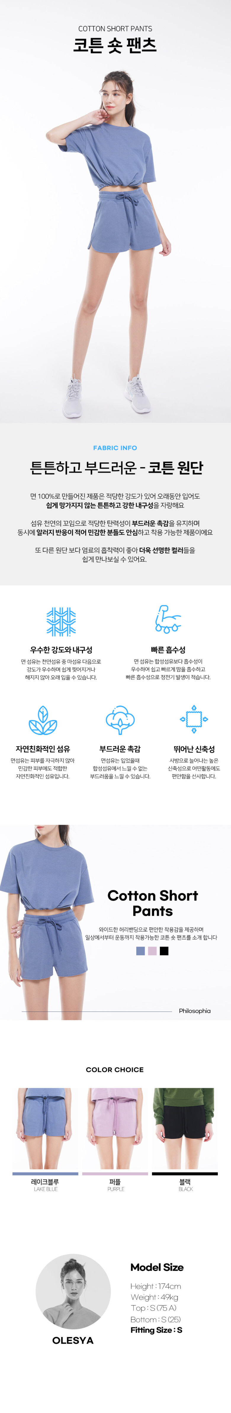 코튼 숏 팬츠 (레이크블루)