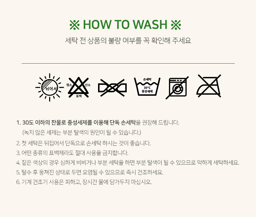- 의류를 세탁한 경우, 향수를 사용한 제품 교환 및 반품 절대불가