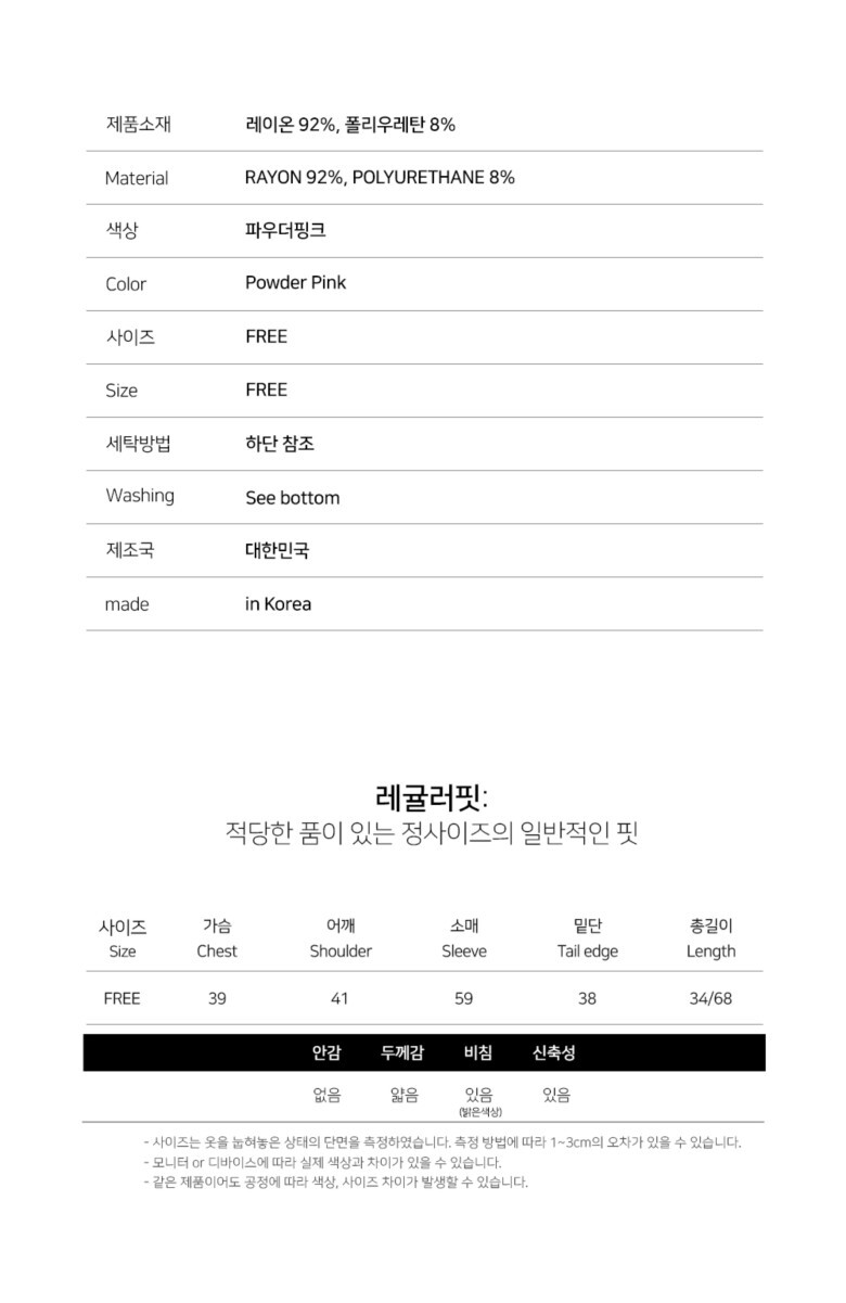 - 의류를 세탁한 경우, 향수를 사용한 제품 교환 및 반품 절대불가