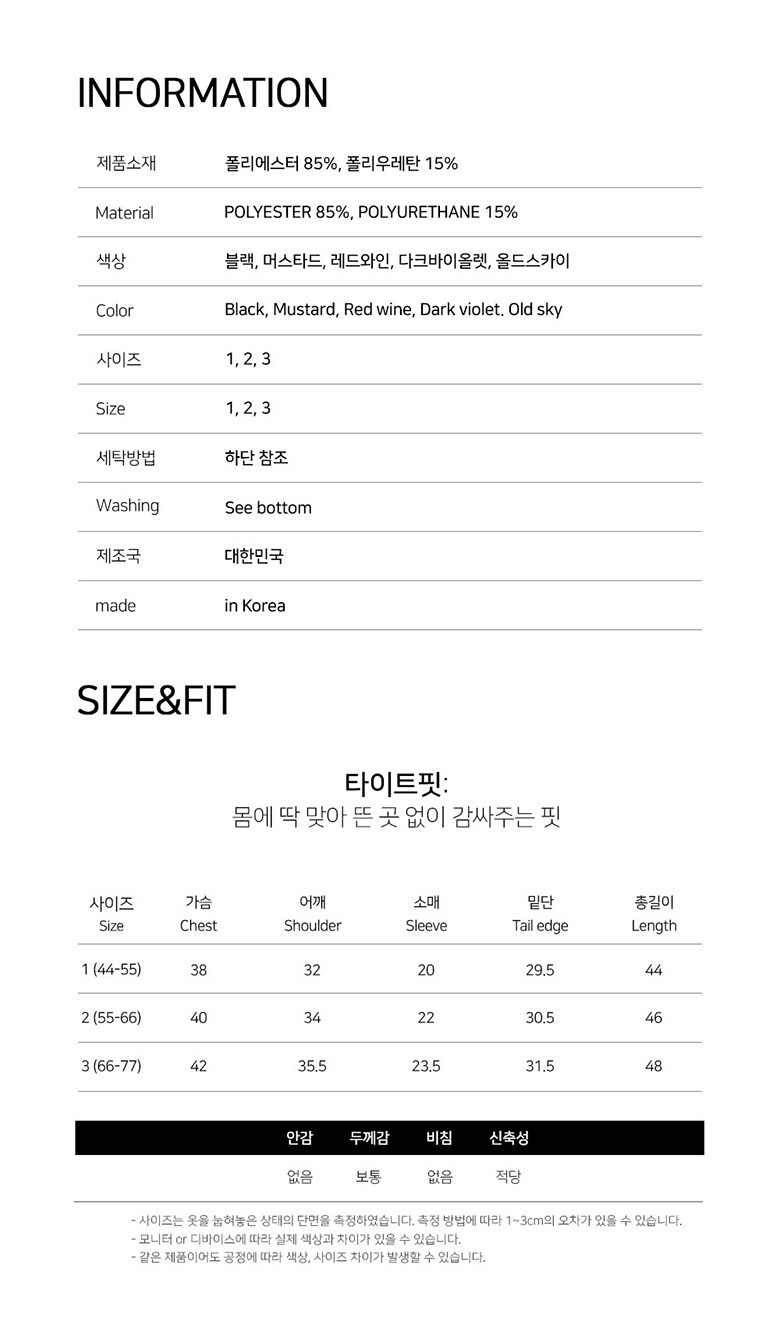 - 의류를 세탁한 경우, 향수를 사용한 제품 교환 및 반품 절대불가