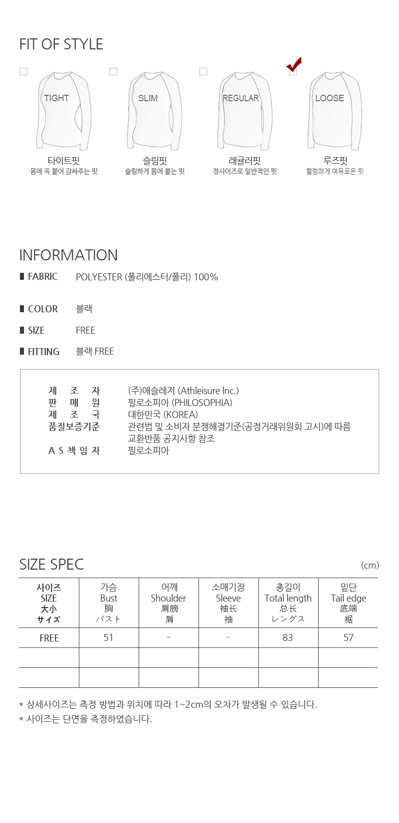 - 사이즈 측정방식에 따른 오차 1-2cm