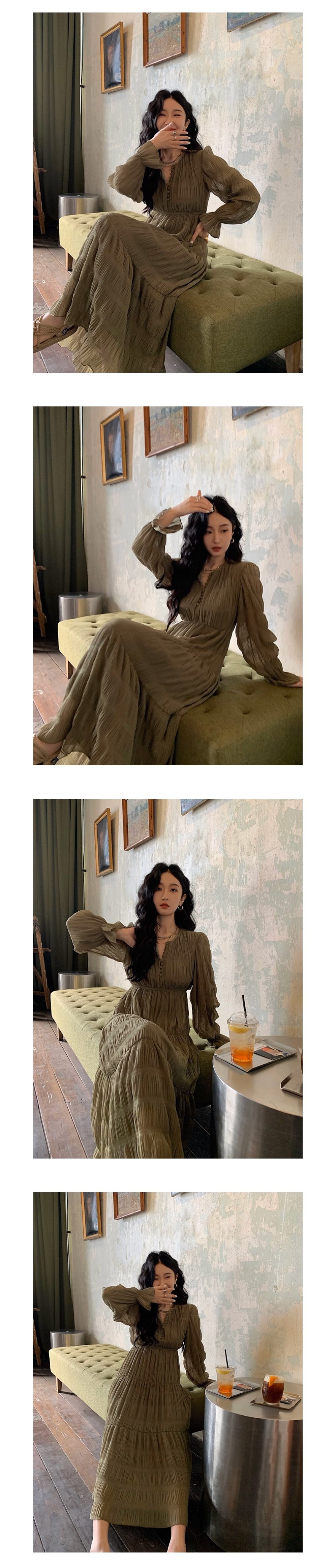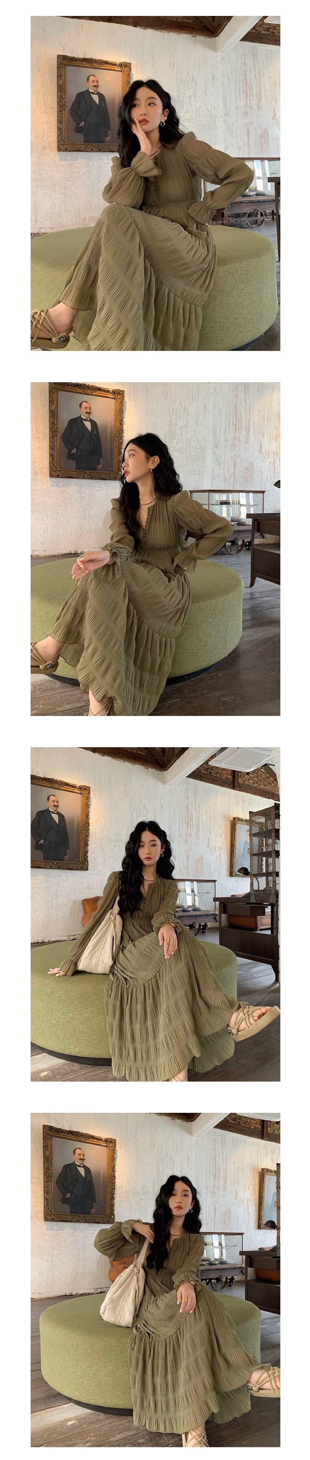 무드 주름 롱 원피스 G18 (2color)
