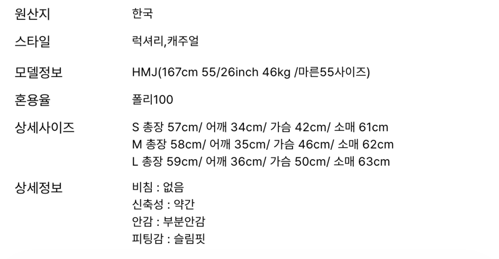 - 의류를 세탁한 경우, 향수를 사용한 제품 교환 및 반품 절대불가