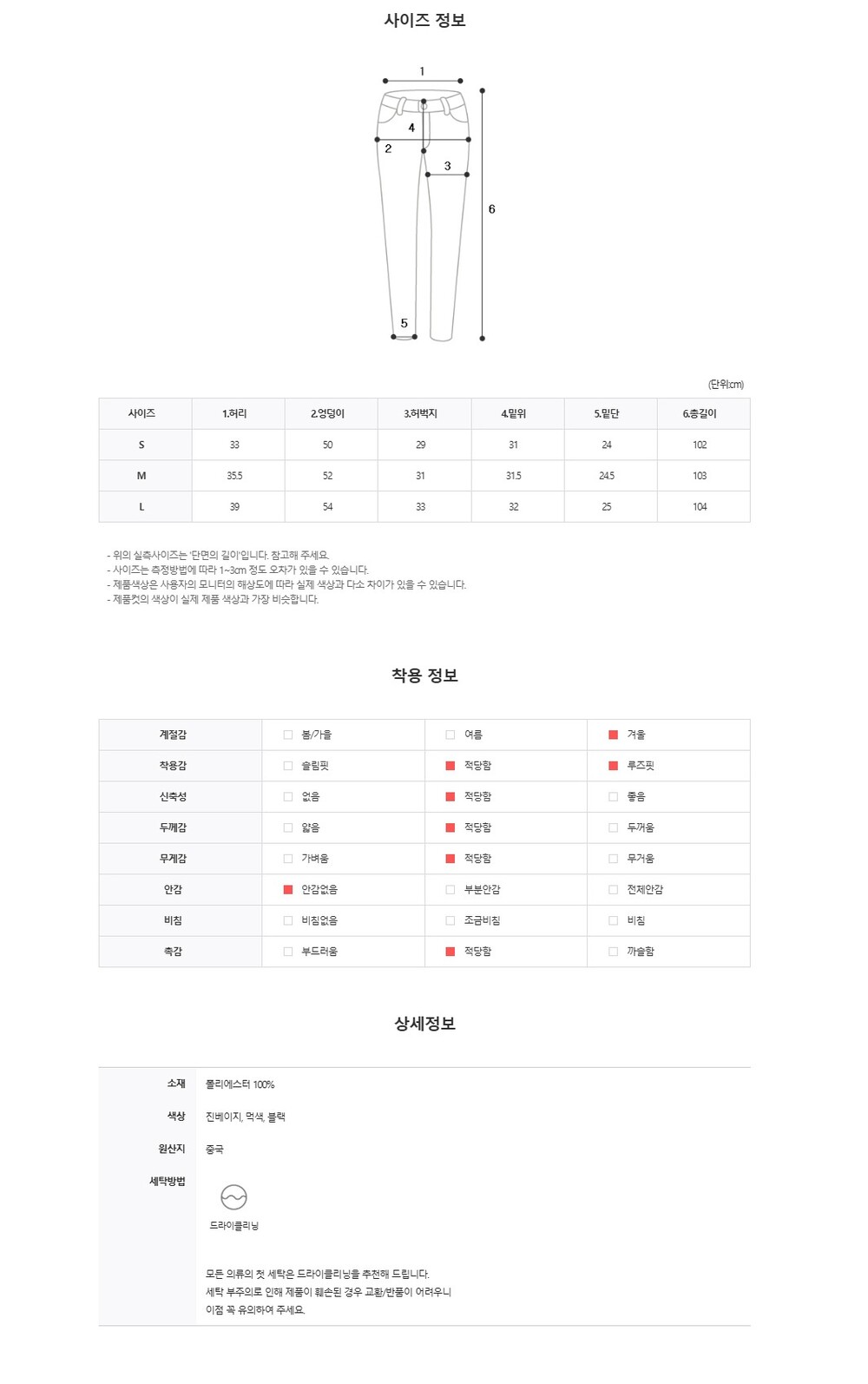 - (평소 착용하는 사이즈가 아닌 로즈윌 기준으로 판단)