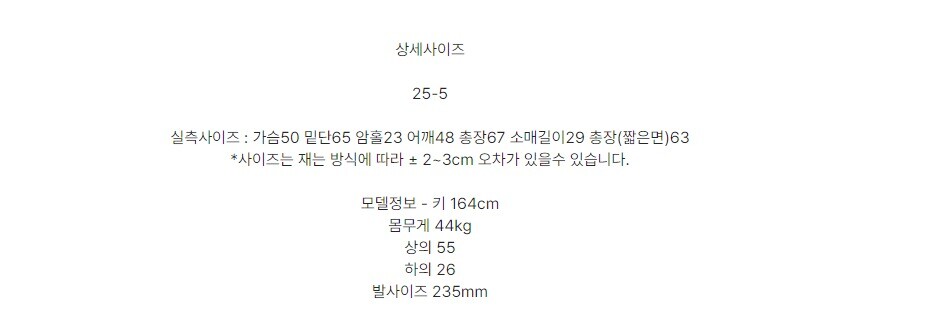 - 사이즈 측정방식에 따른 오차 1-2cm