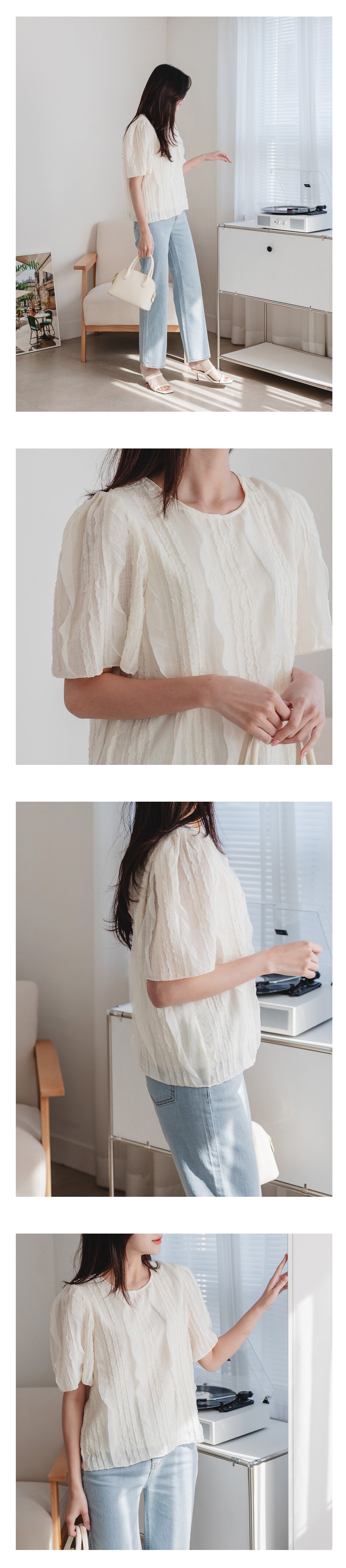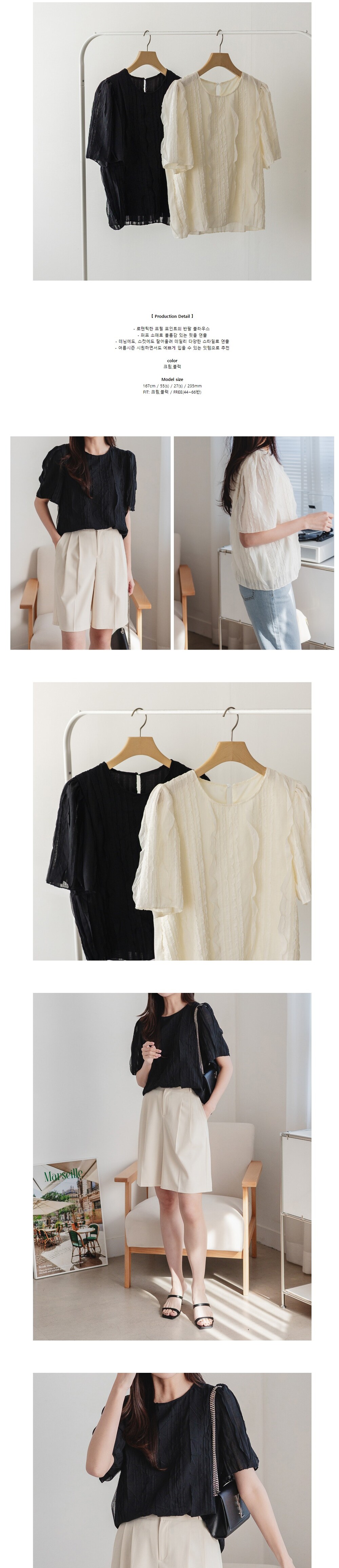 프릴 퍼프 반팔 블라우스 M1 (2color)