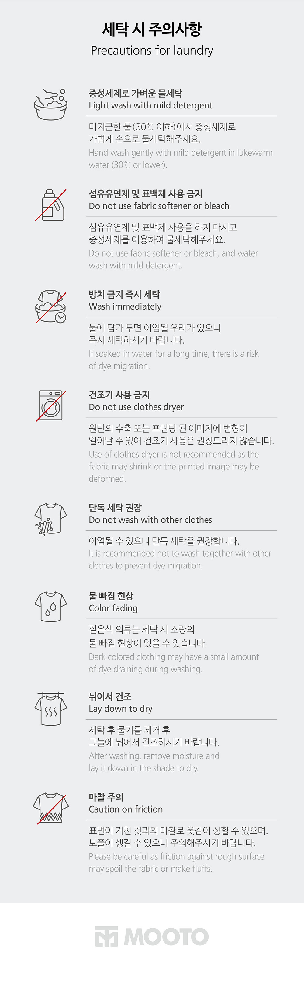 5벌 이상 대량 구매 시, 제품 착용/세탁/택 제거/구김/향수 및 오염 등