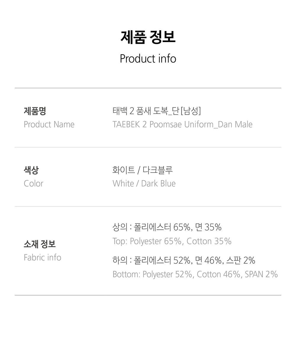 태백 2 품새 도복 [유단자-남]