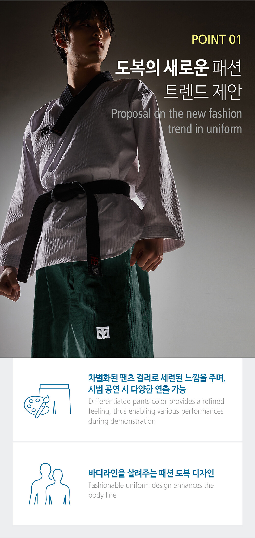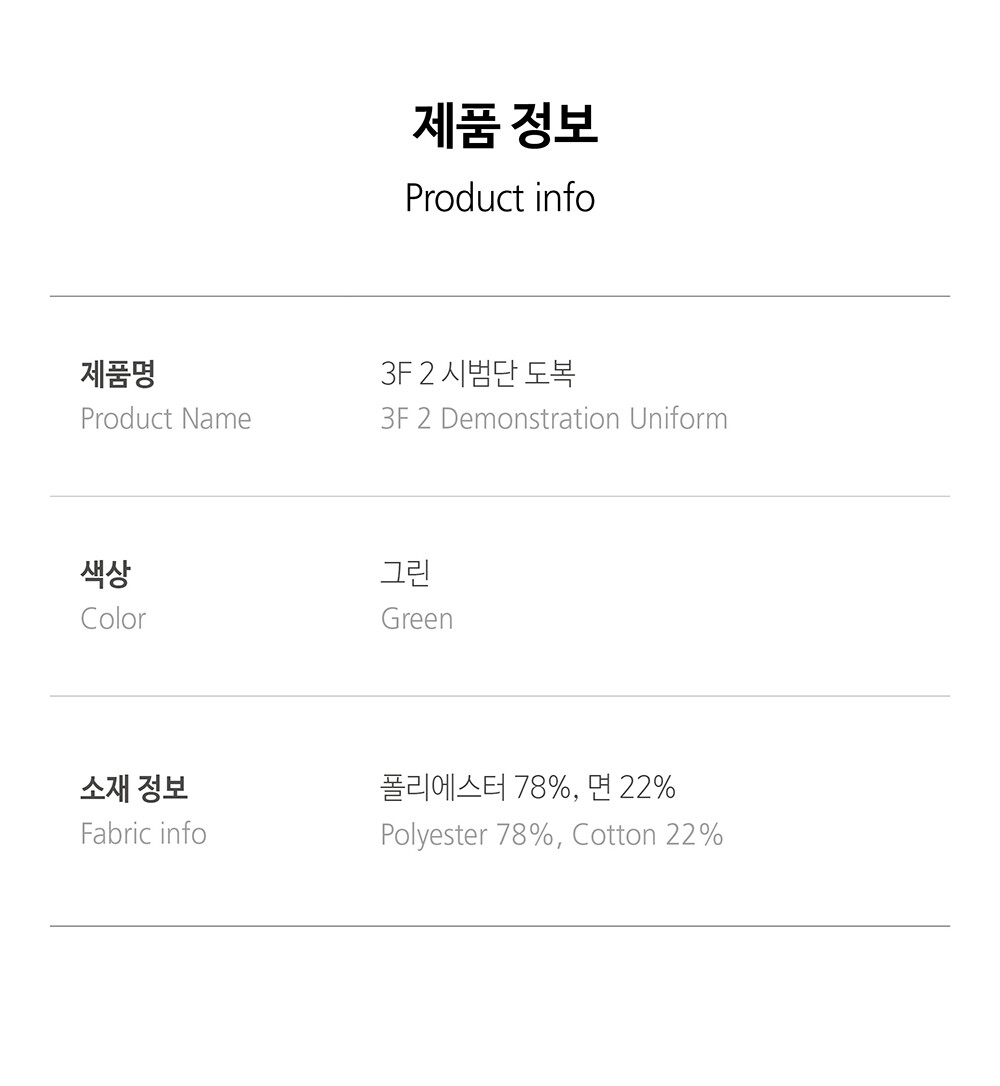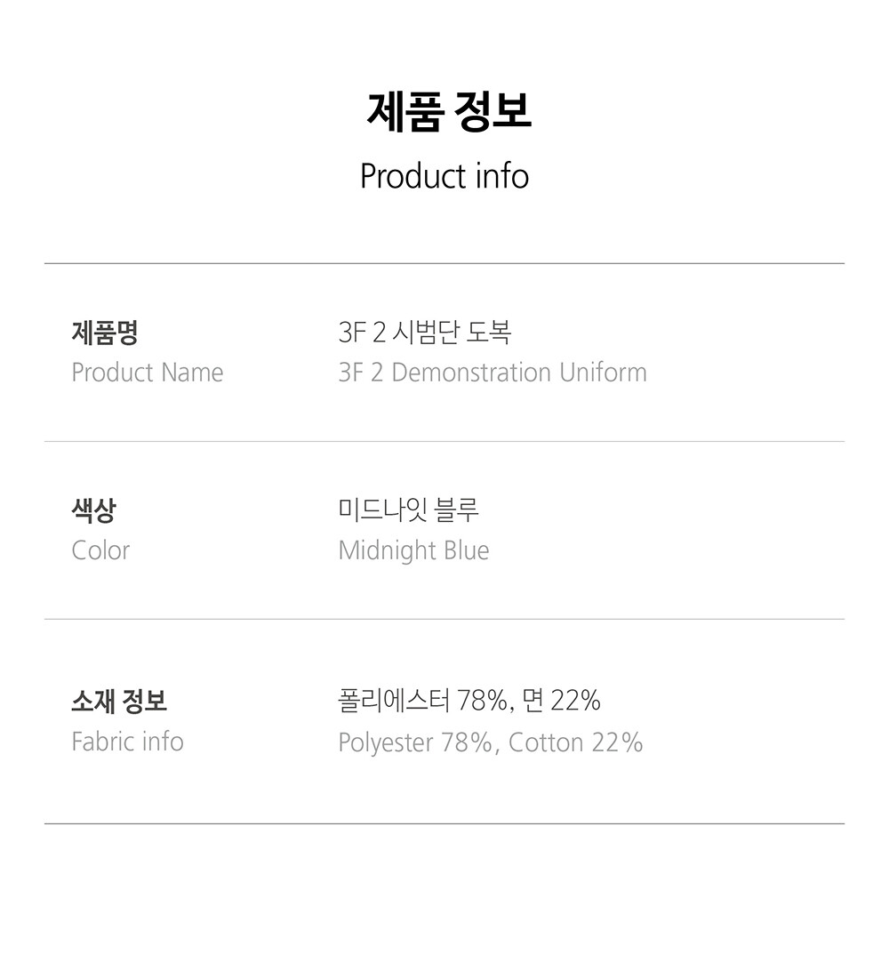 3F 2 시범단 도복(그린, 미드나잇블루, 블랙)