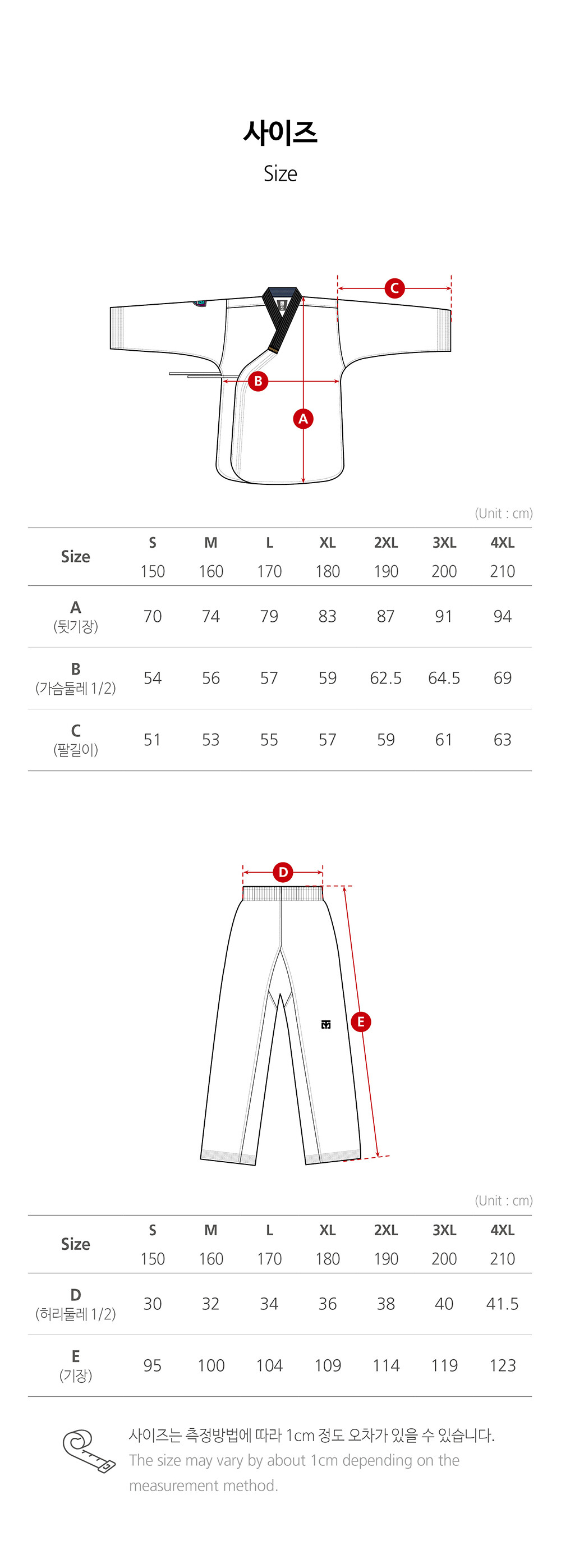 - 사이즈 측정방식에 따른 오차 1-2cm