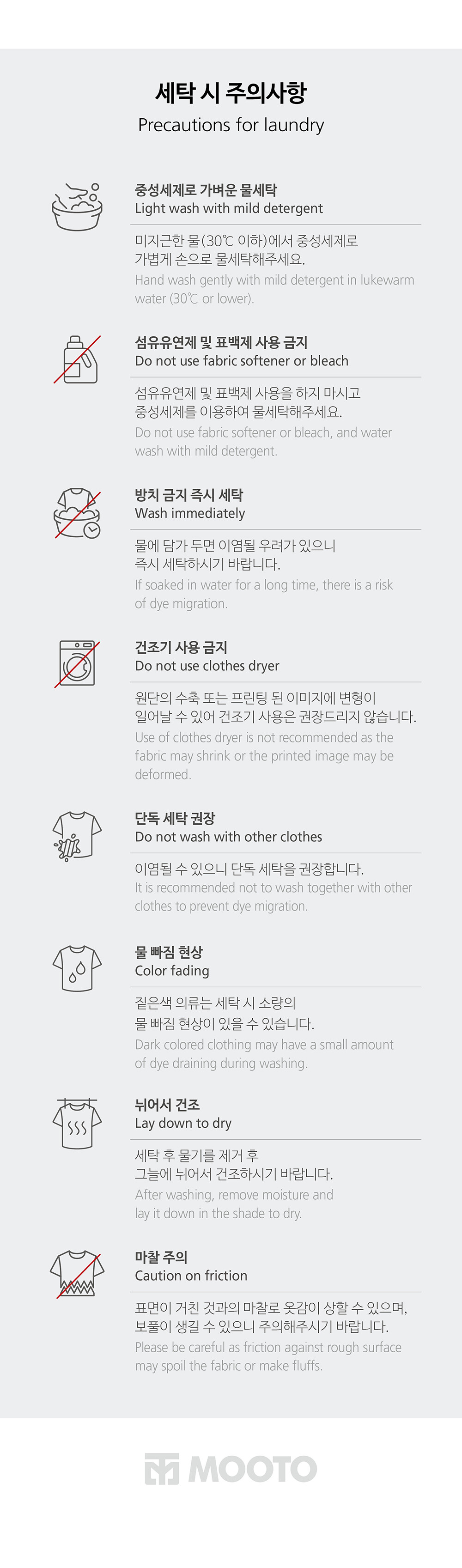 5벌 이상 대량 구매 시, 제품 착용/세탁/택 제거/구김/향수 및 오염 등